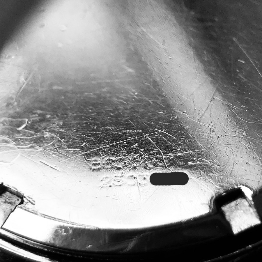 Beginnen wir mit dem Gehäuse. Es wurde vom berühmten Designer Gérald Genta entworfen und besitzt eine asymmetrische Form. Dies verleiht der Uhr ein extravagantes Aussehen, doch in erster Linie dient das asymmetrische Gehäuse zum besseren Schutz der verschraubten Krone während des Tauchens. Es sind keine Anzeichen der Überpolitur erkennbar. Auf dem verschraubten Gehäuseboden ist die Referenz- und die Seriennummer immer noch sichtbar. Bei den meisten Vintage Universal Genève Uhren ist das nicht mehr der Fall, da die Uhren notwendigerweise über die Jahre mehrfach einer Politur unterzogen wurden. Die Krone ist original und signiert mit dem UG-Logo.