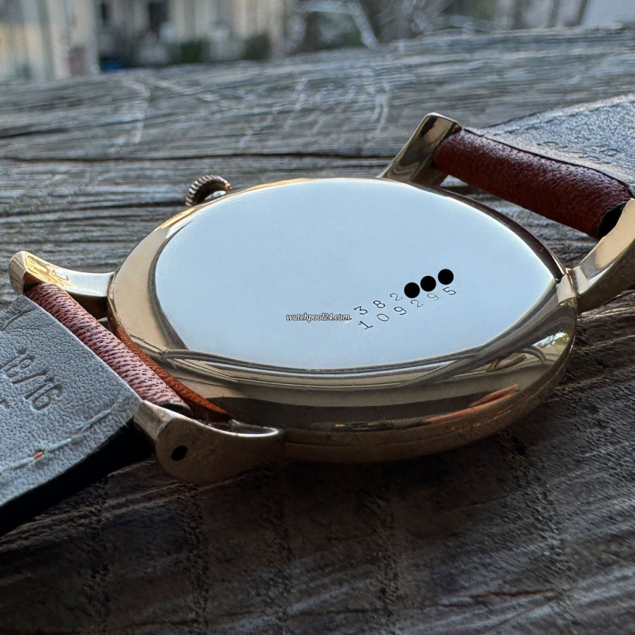 Gehäuse: 18K Rotgoldgehäuse - ohne Tragespuren - intakte Goldpunze auf dem Bandanstoß - tiefe Nummern auf dem Gehäuseboden.