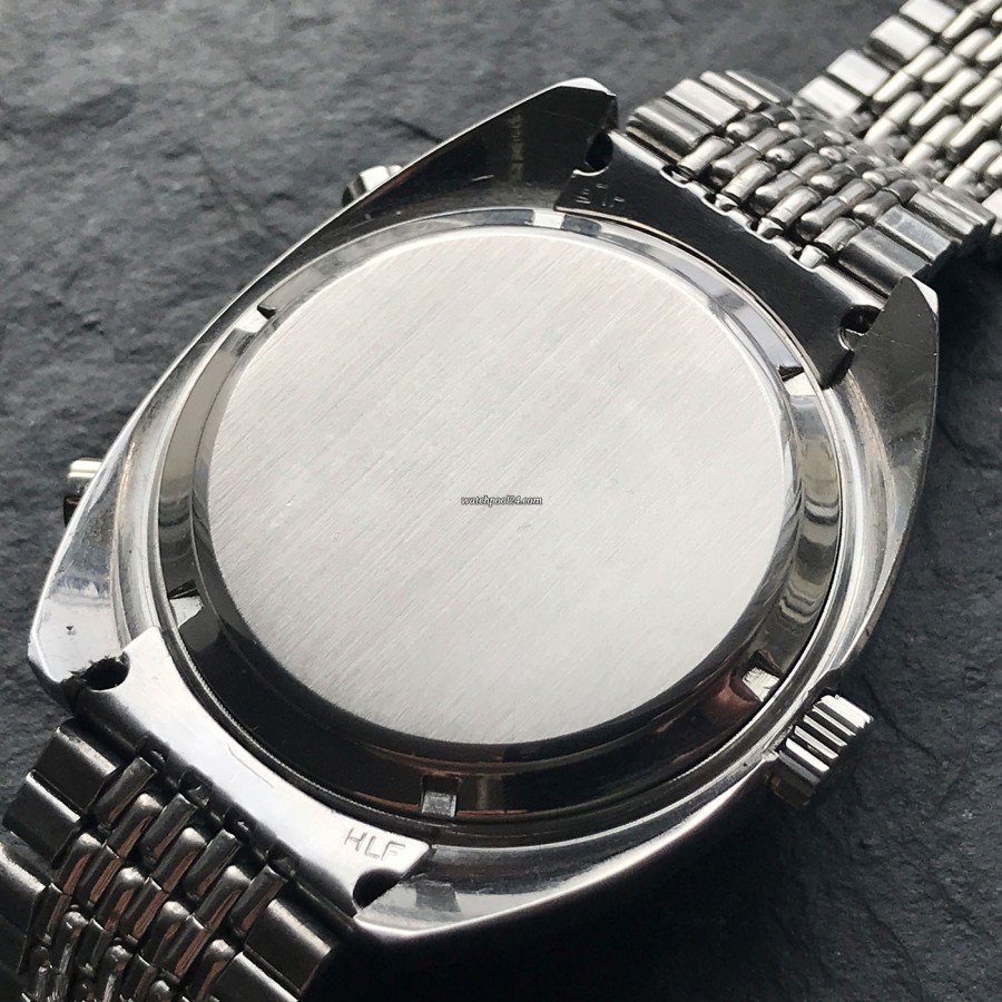 The movement of this Autavia is the Heuer Calibre 14, which is based on the famous automatic Calibre 11 and is equipped with an additional GMT module, which drives the GMT hand and thus showing the second time zone. The movement was checked by our watchmaker and runs flawlessly.